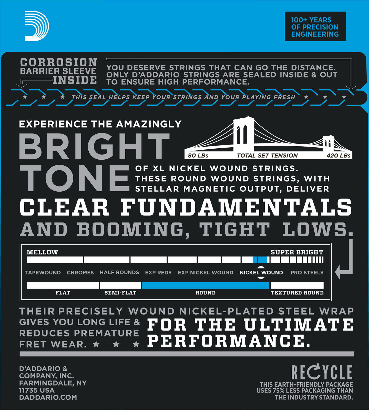 Electric Bass Strings EXL170 .045 - .100 (4 Strings)